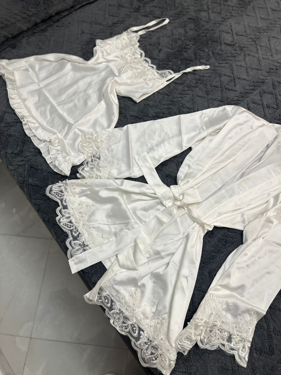 | Type de Vêtement | Ensemble de Nuit 3 Pièces (Robe, Haut à bretelles et Pantalon). |