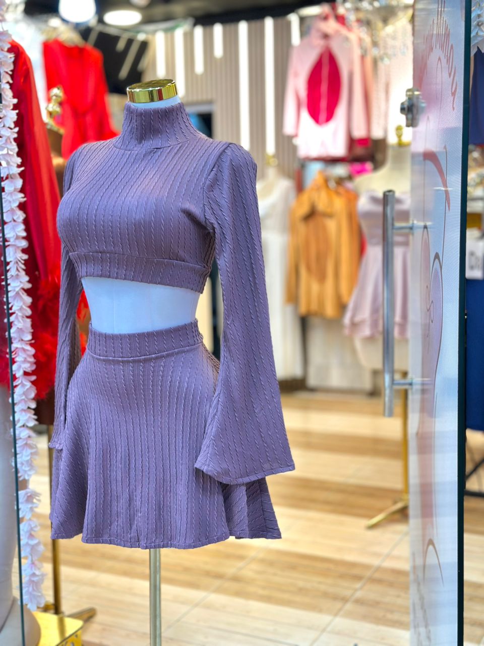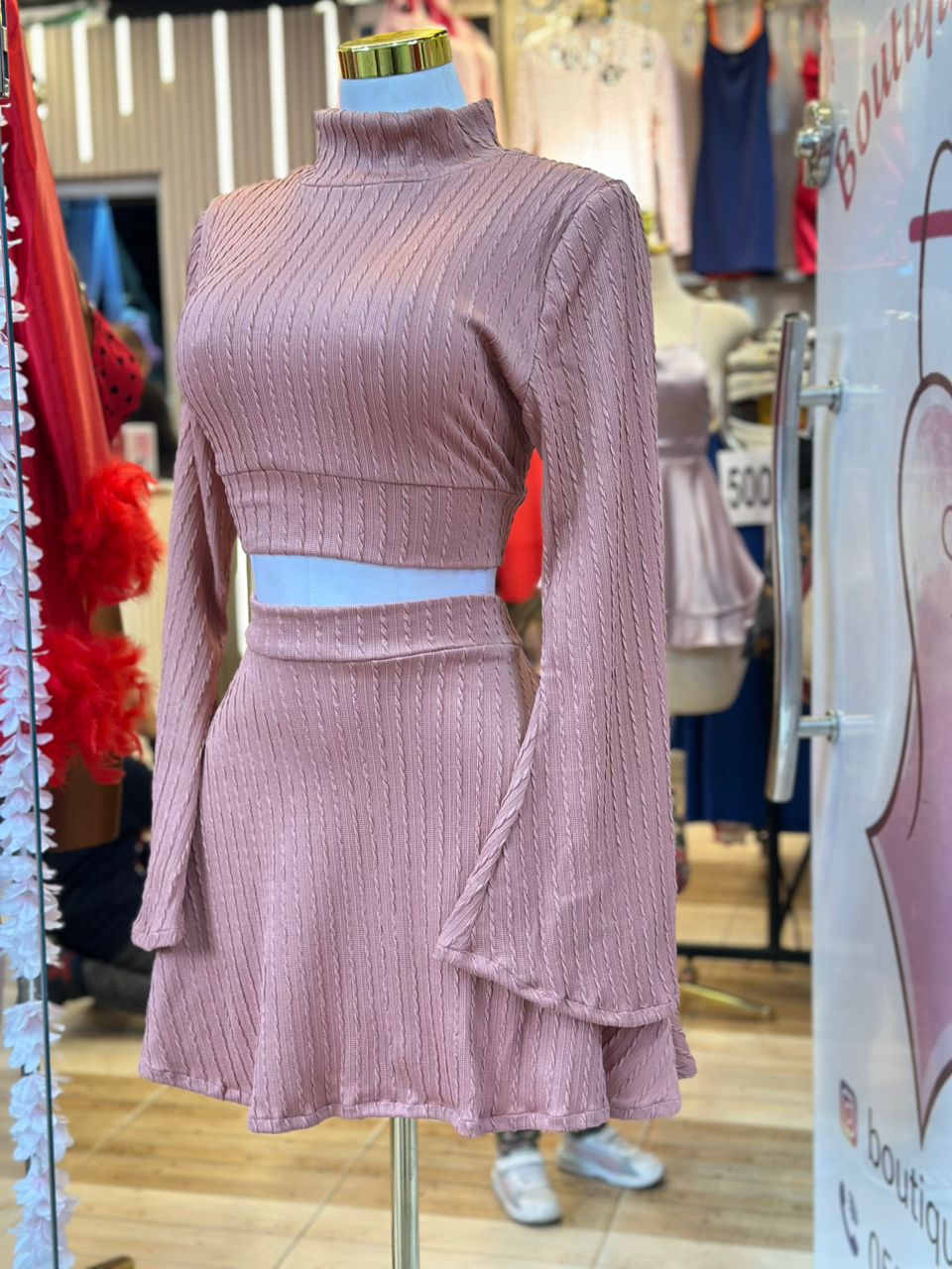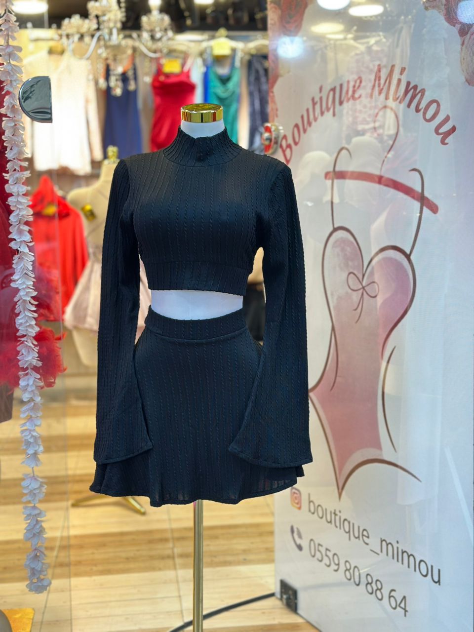 | Type de Vêtement | Ensemble Deux Pièces (Haut court + Mini-Jupe). Idéal pour un look Chic Hivernal ou Automnal. |