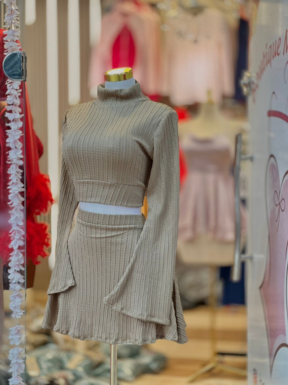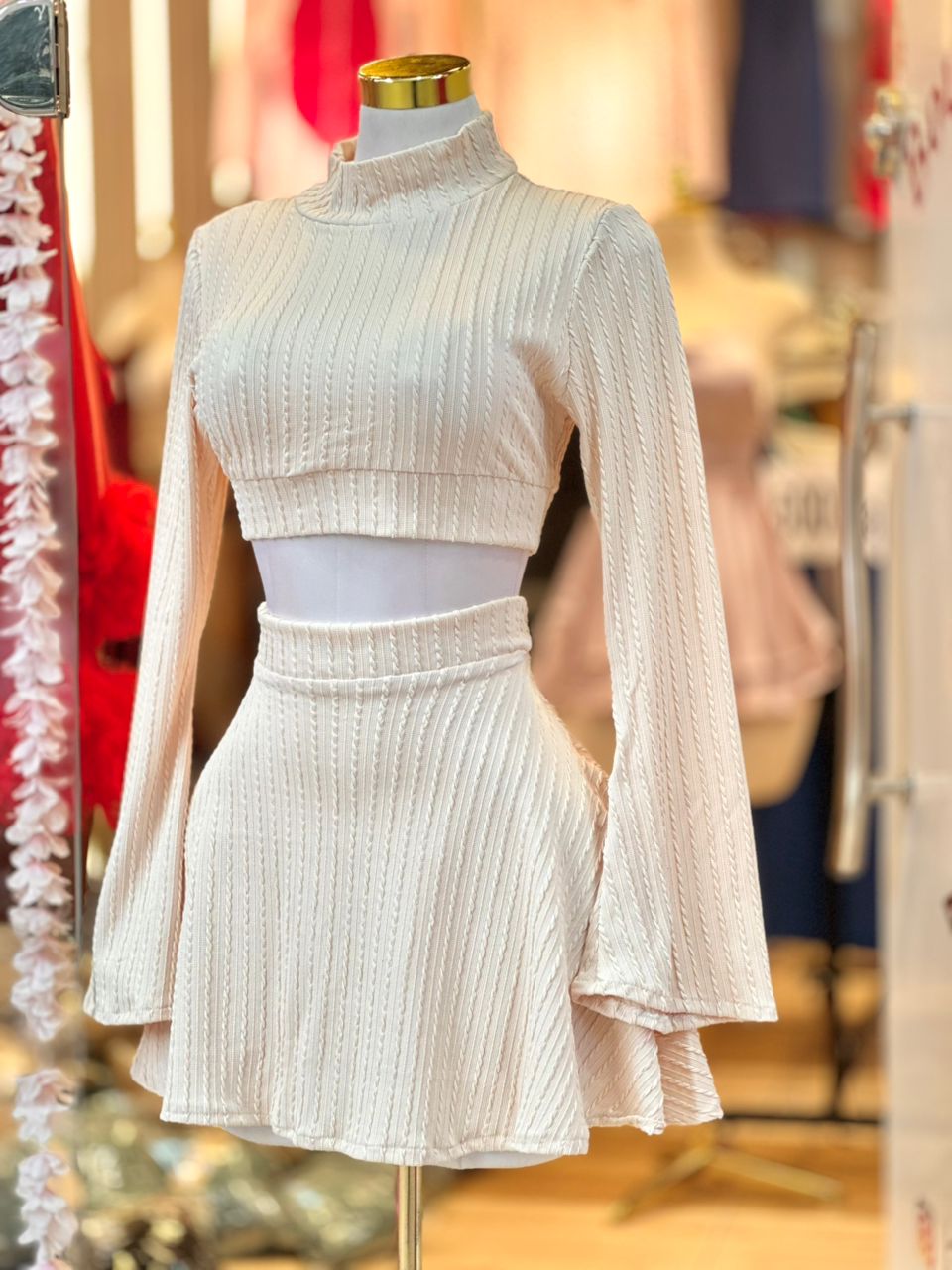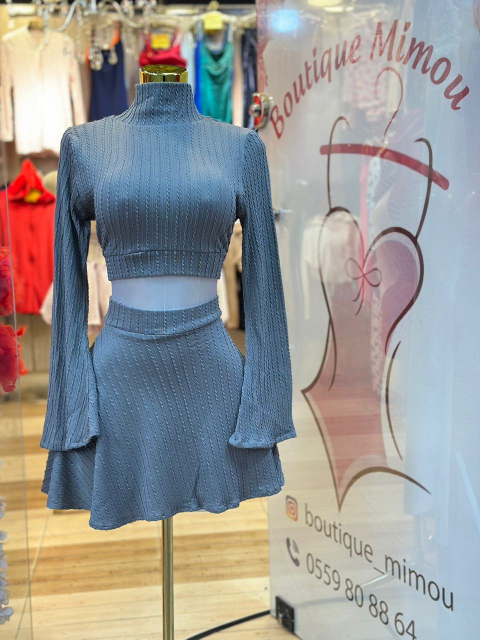 | Type de Vêtement | Ensemble Deux Pièces (Haut court + Mini-Jupe). Idéal pour un look Chic Hivernal ou Automnal. |